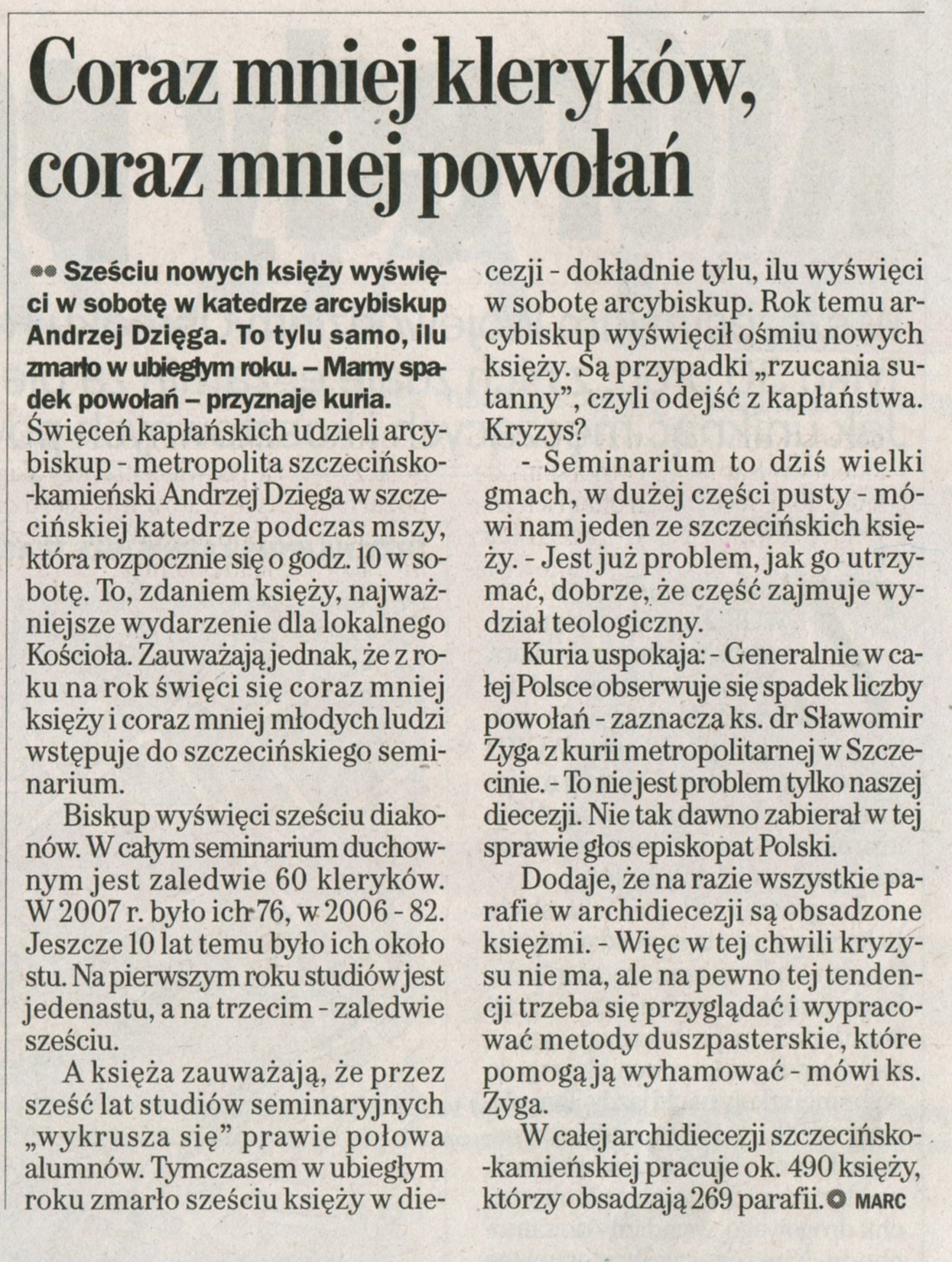 Coraz mniej kleryków, coraz mniej powołań