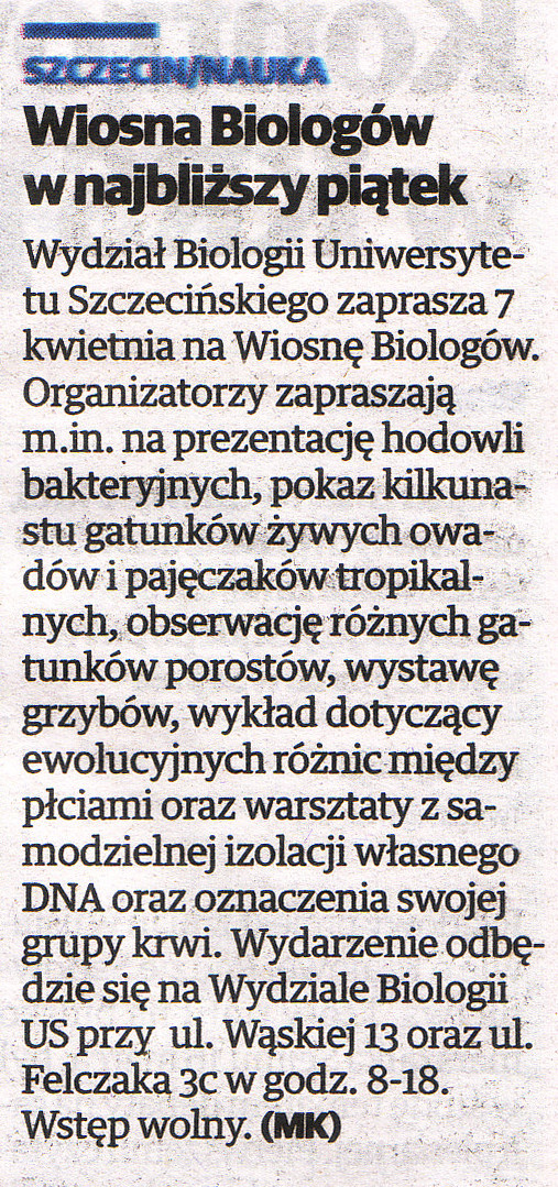 Wiosna Biologów w najbliższy piątek
